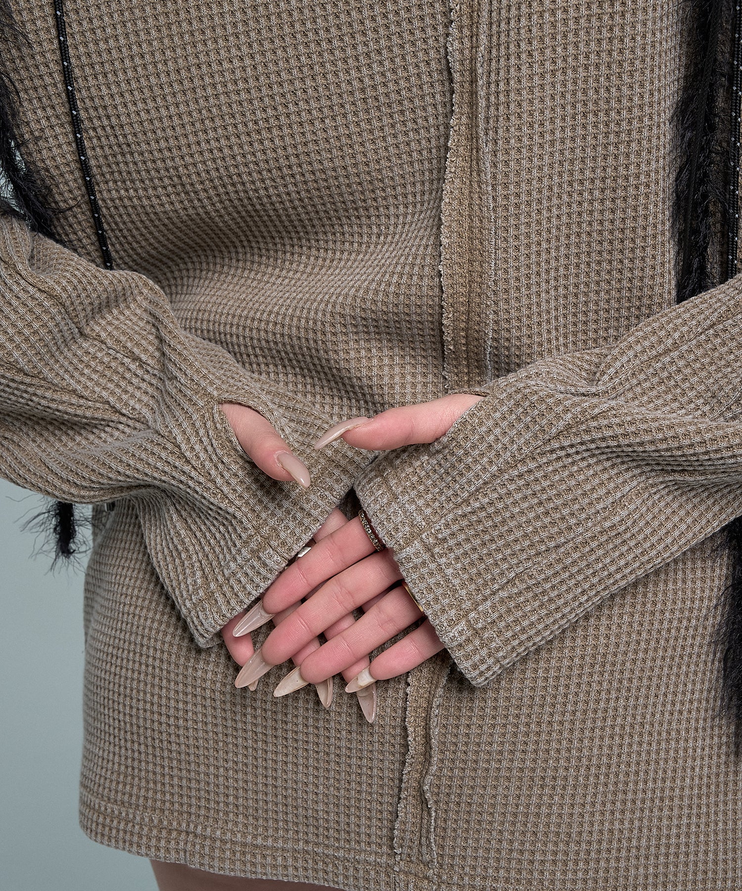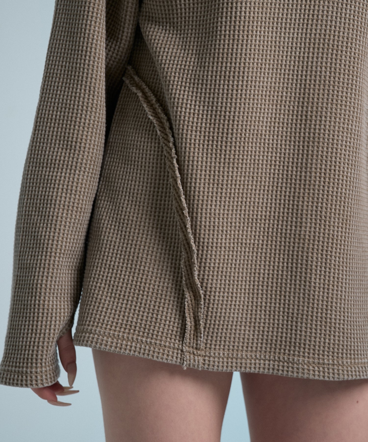 ウエストラインは切りっぱなしのデザインにし、立体感の出るデザインに。