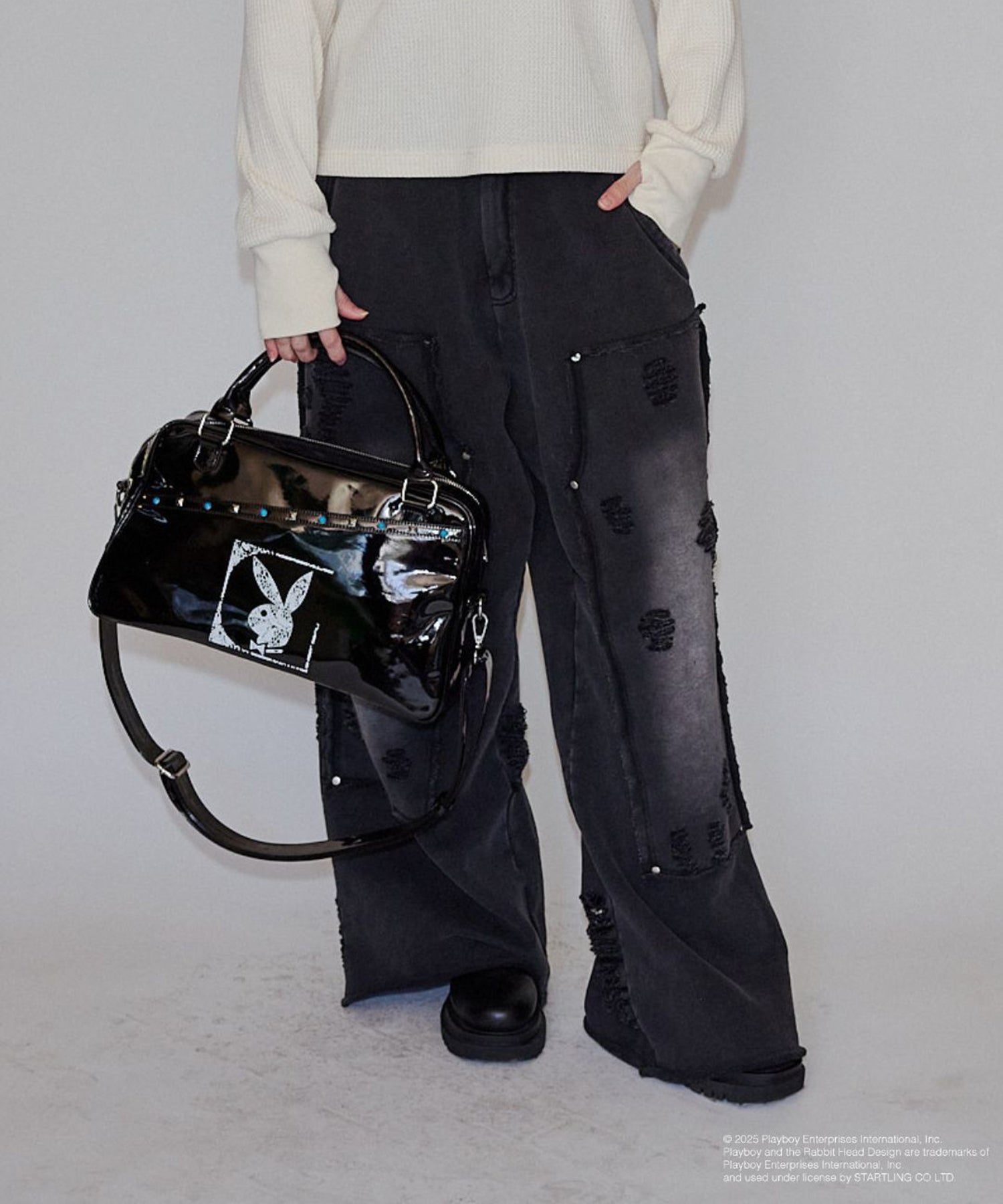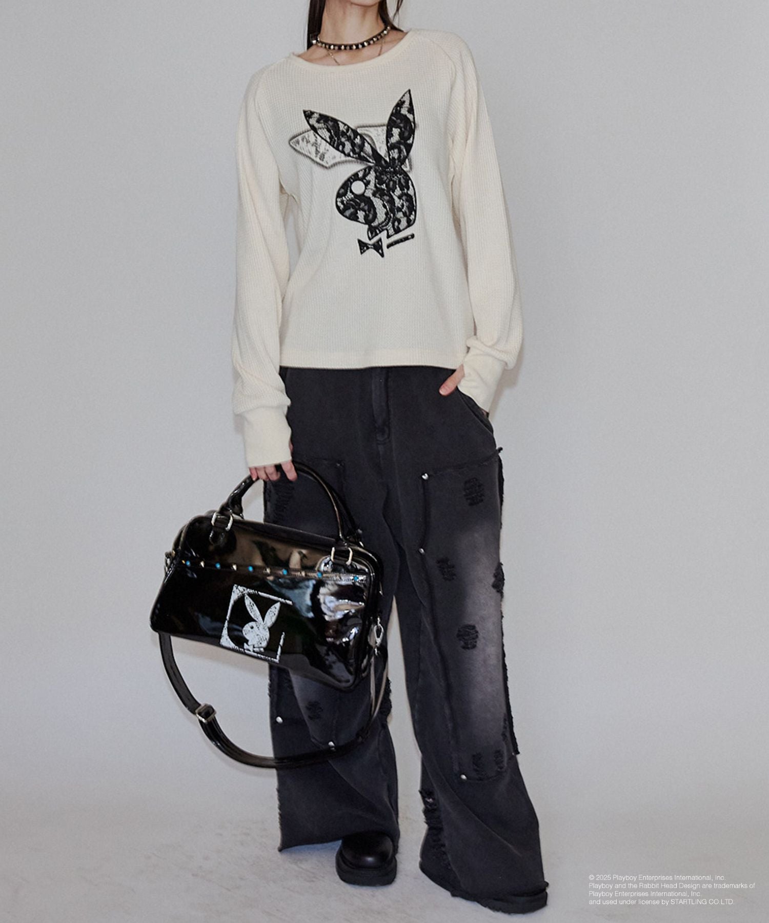 レースグラフィックをあしらったラビットロゴと、ターコイズボタンのアクセントがポイント。手持ち・肩掛けの2WAY仕様で、13インチのMacBook Proがすっぽり入る実用的なサイズ感も魅力。