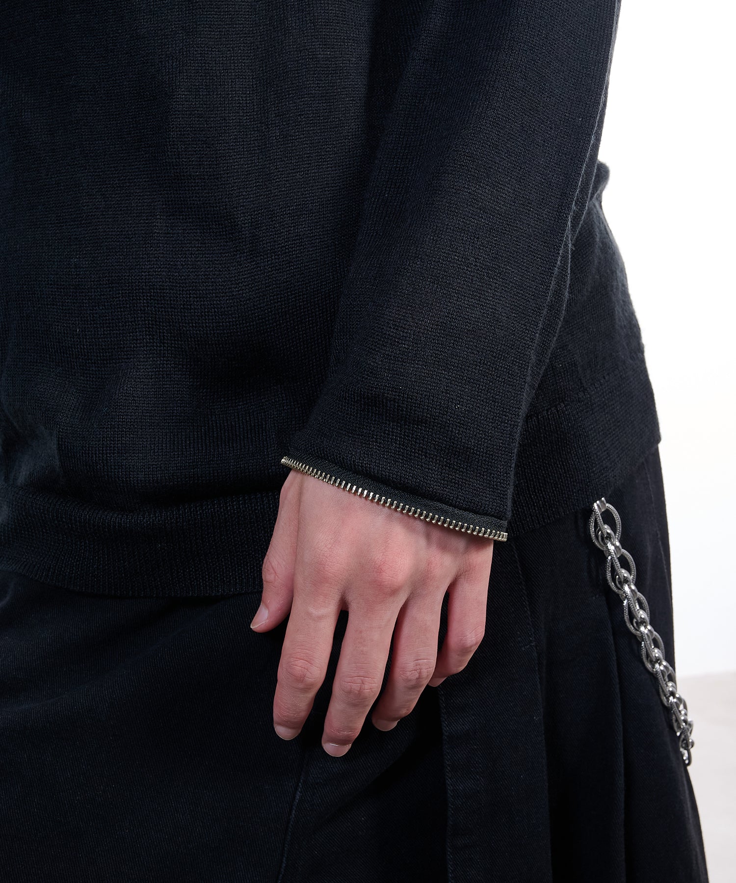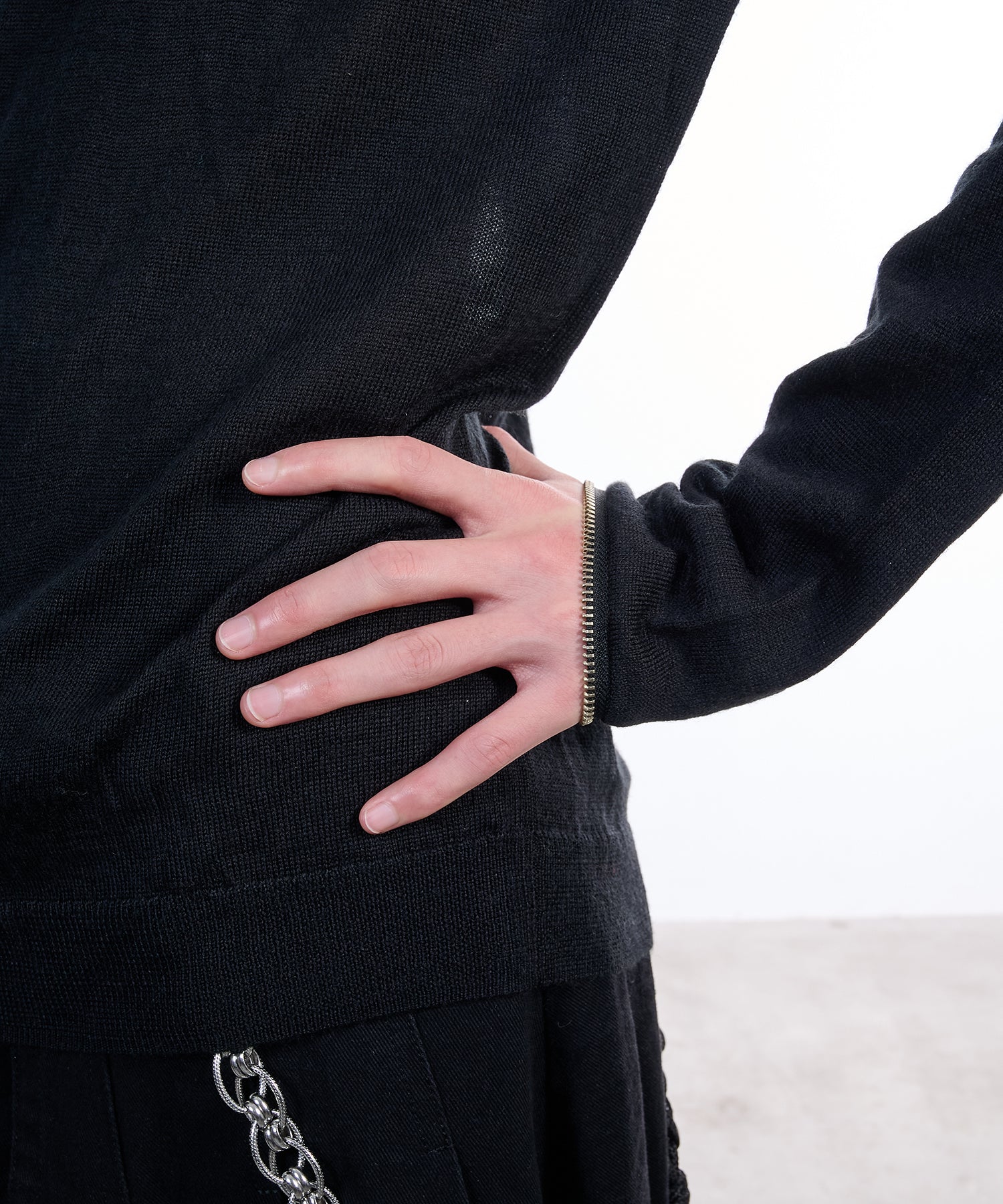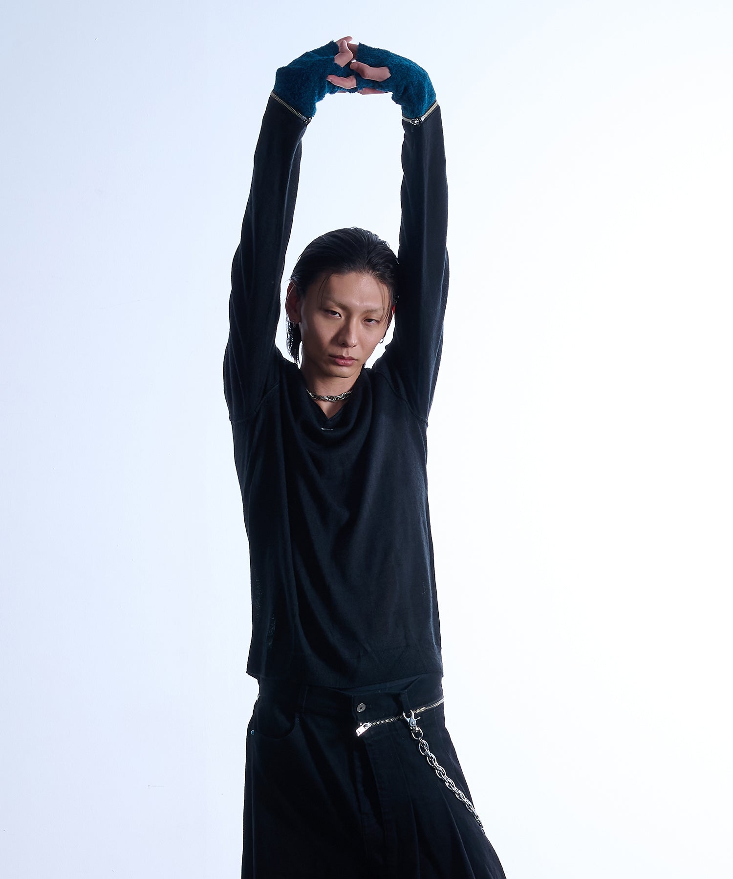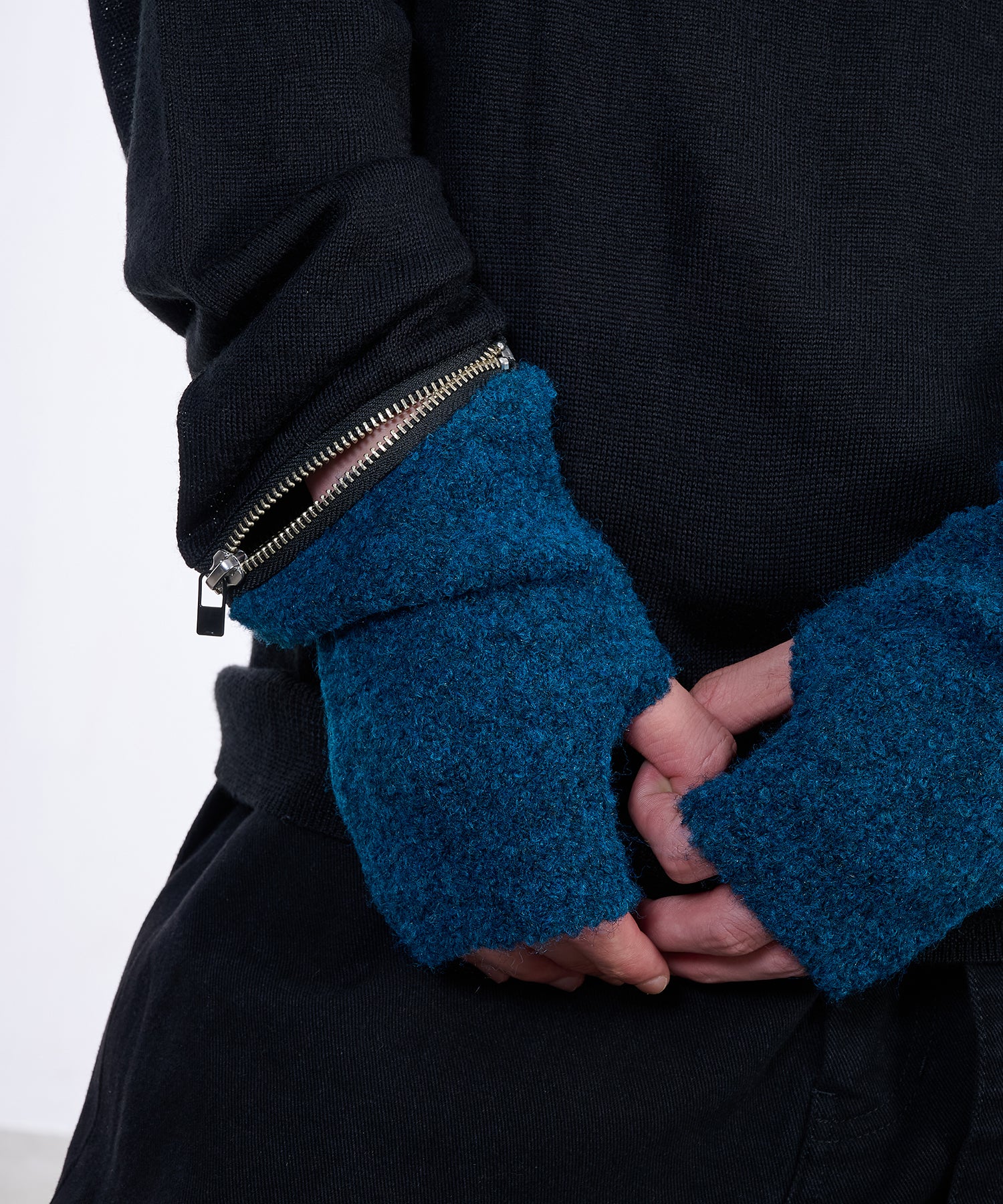 袖元のアームグローブは取り外し可能で取り外すことでシンプルなニットとしても着用可能です。