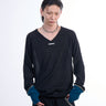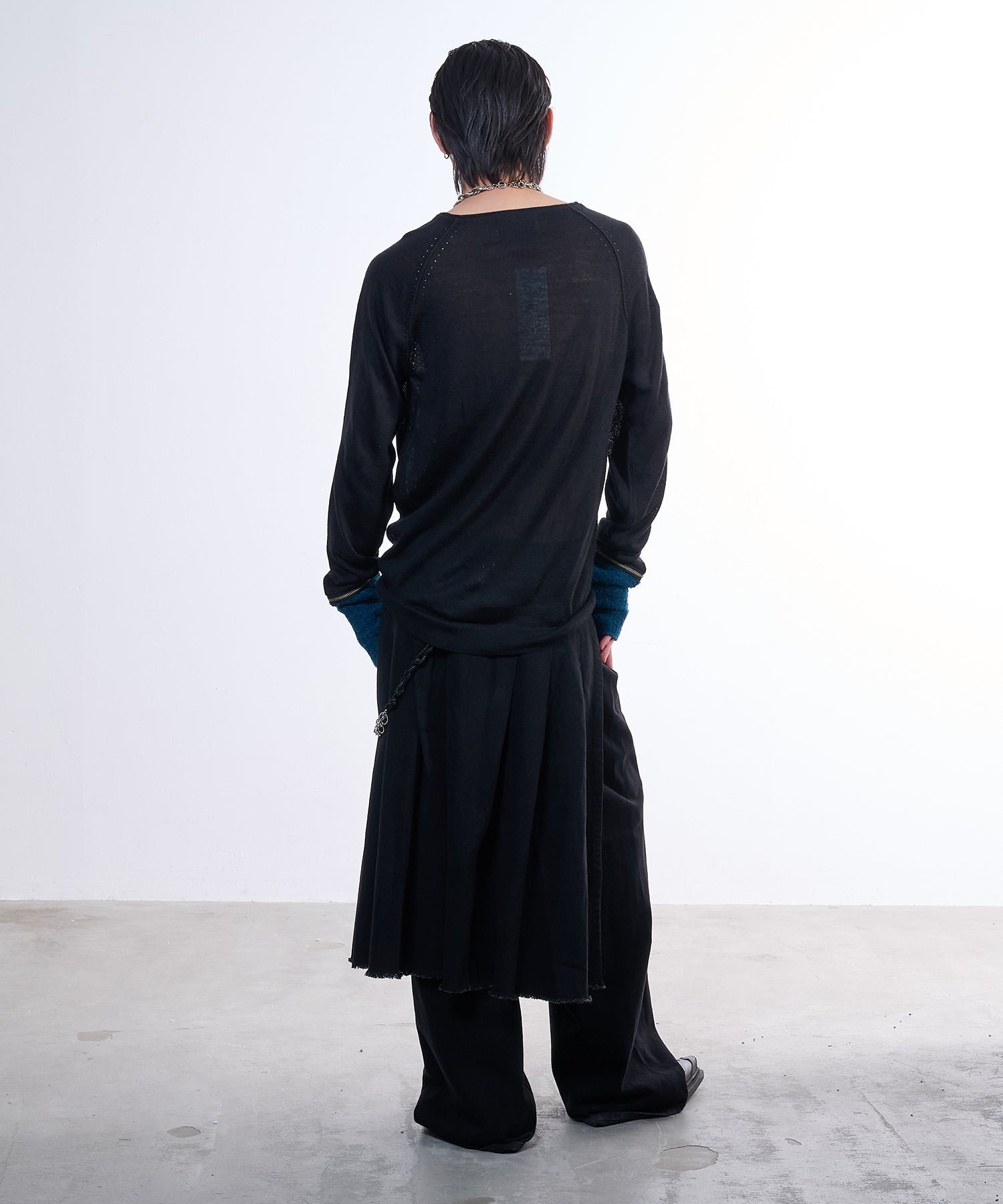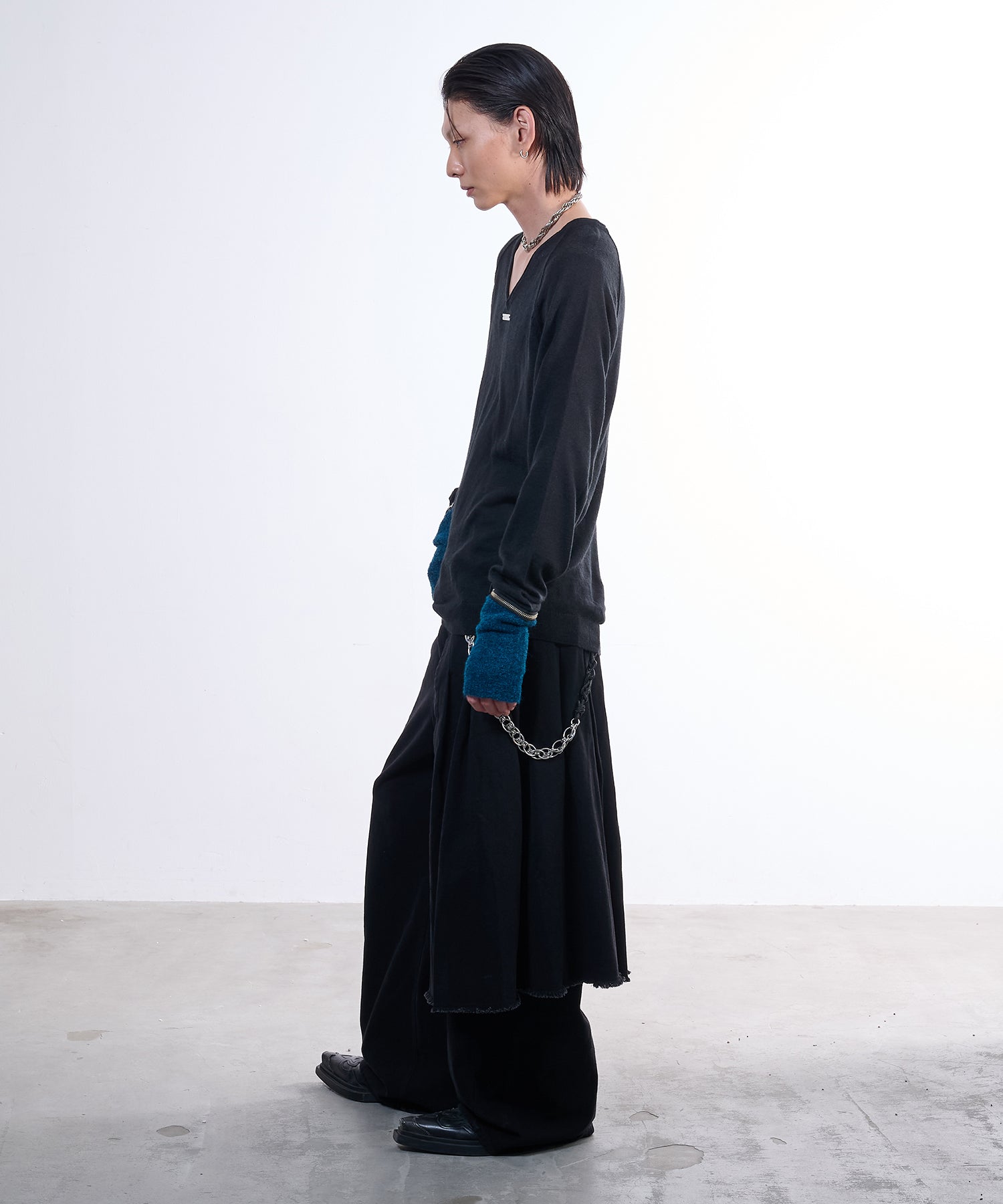 深めのVネックと袖口に施したアームグローブがアクセントに。