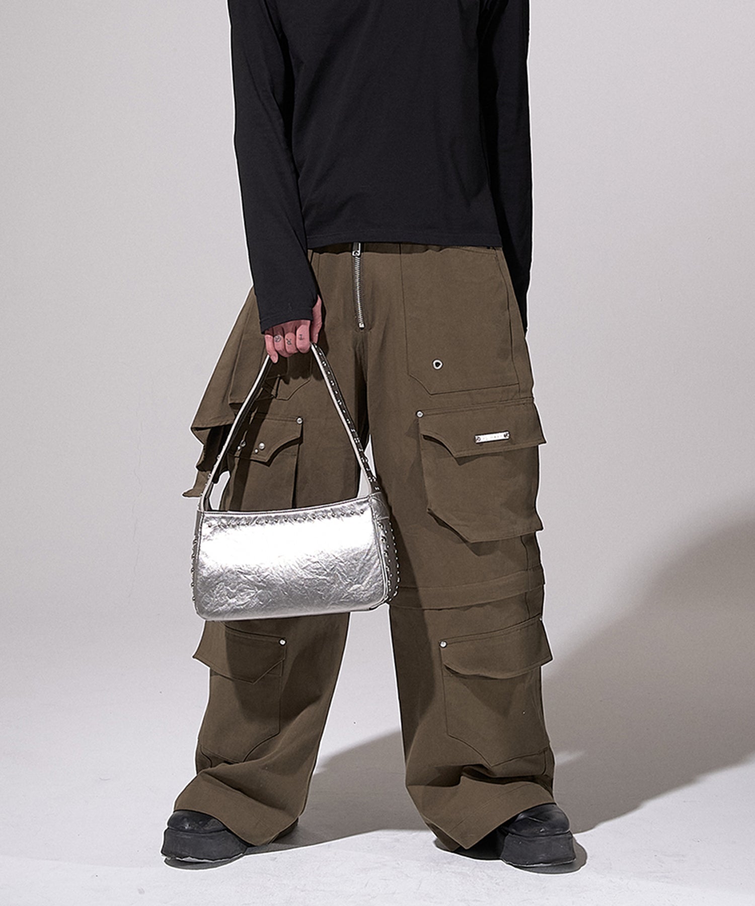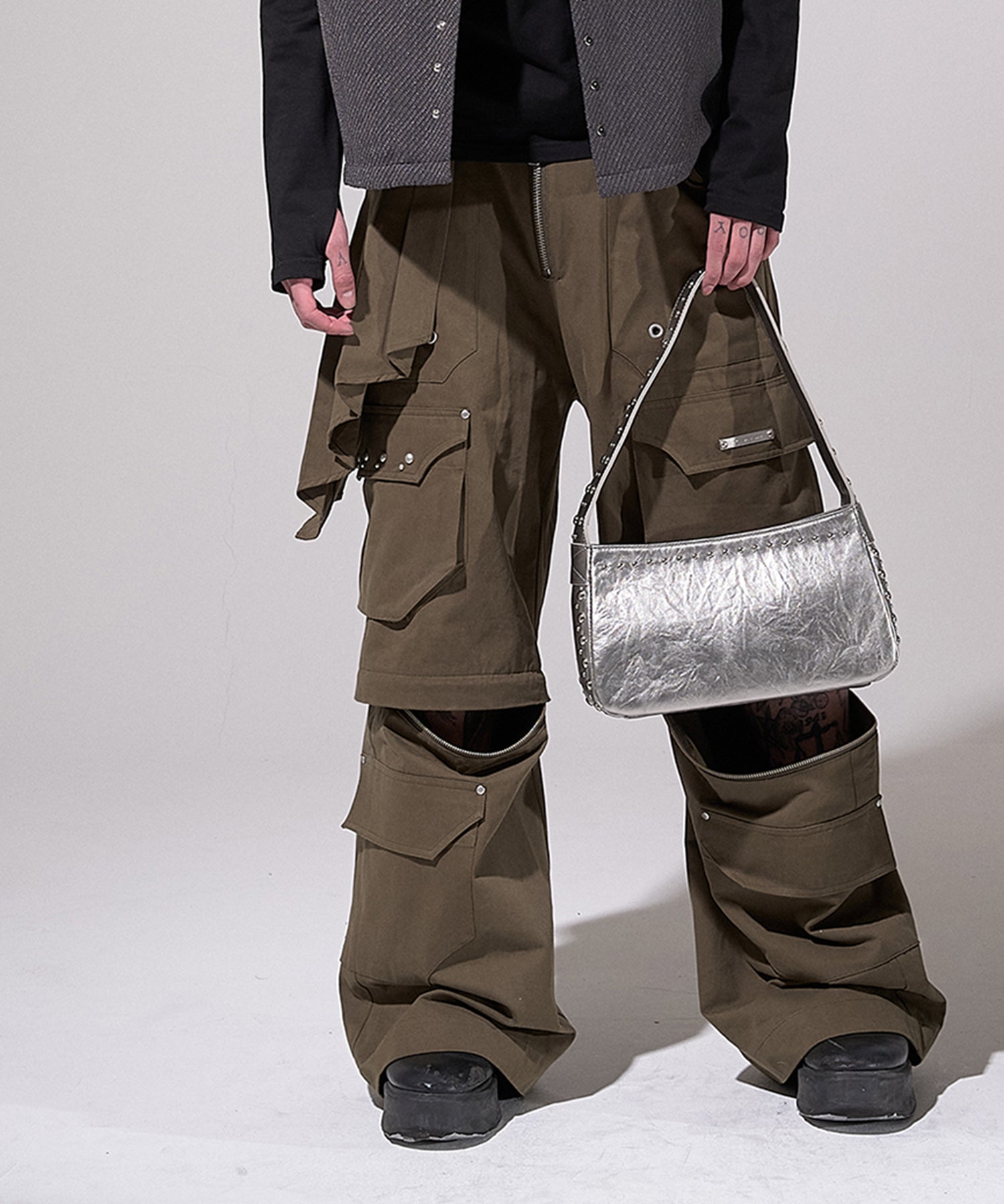 クラシックなショルダーバッグのフォルムにグランジなノイズ感を刻み込むアクセント。
