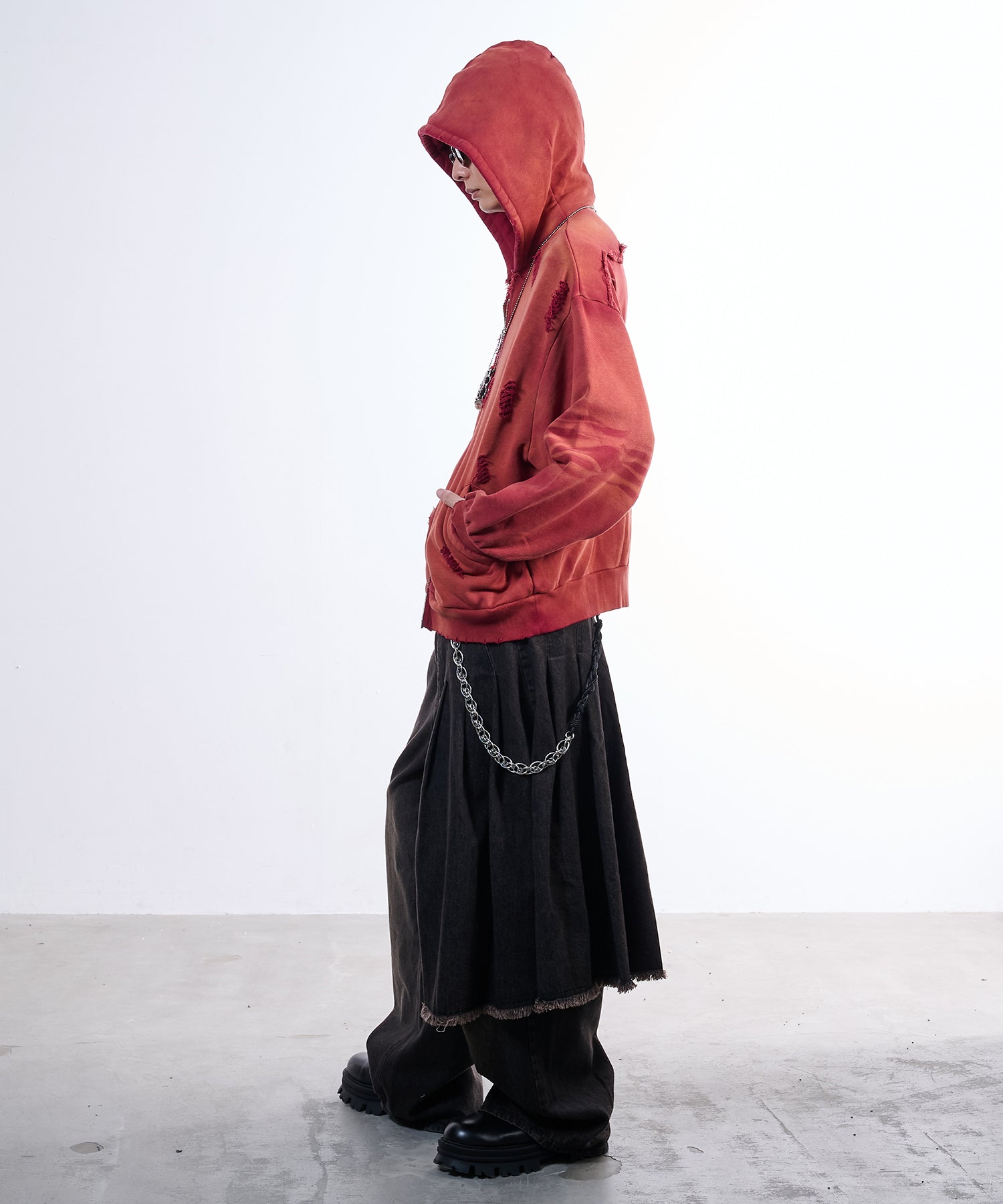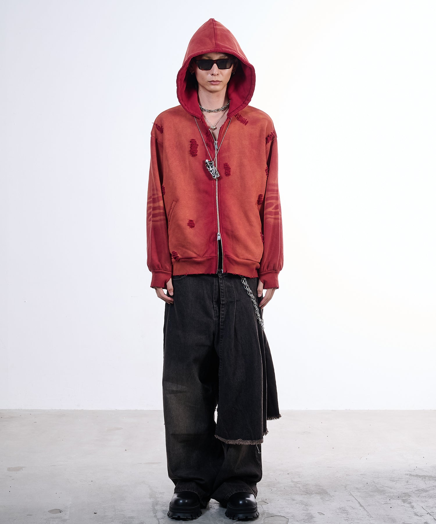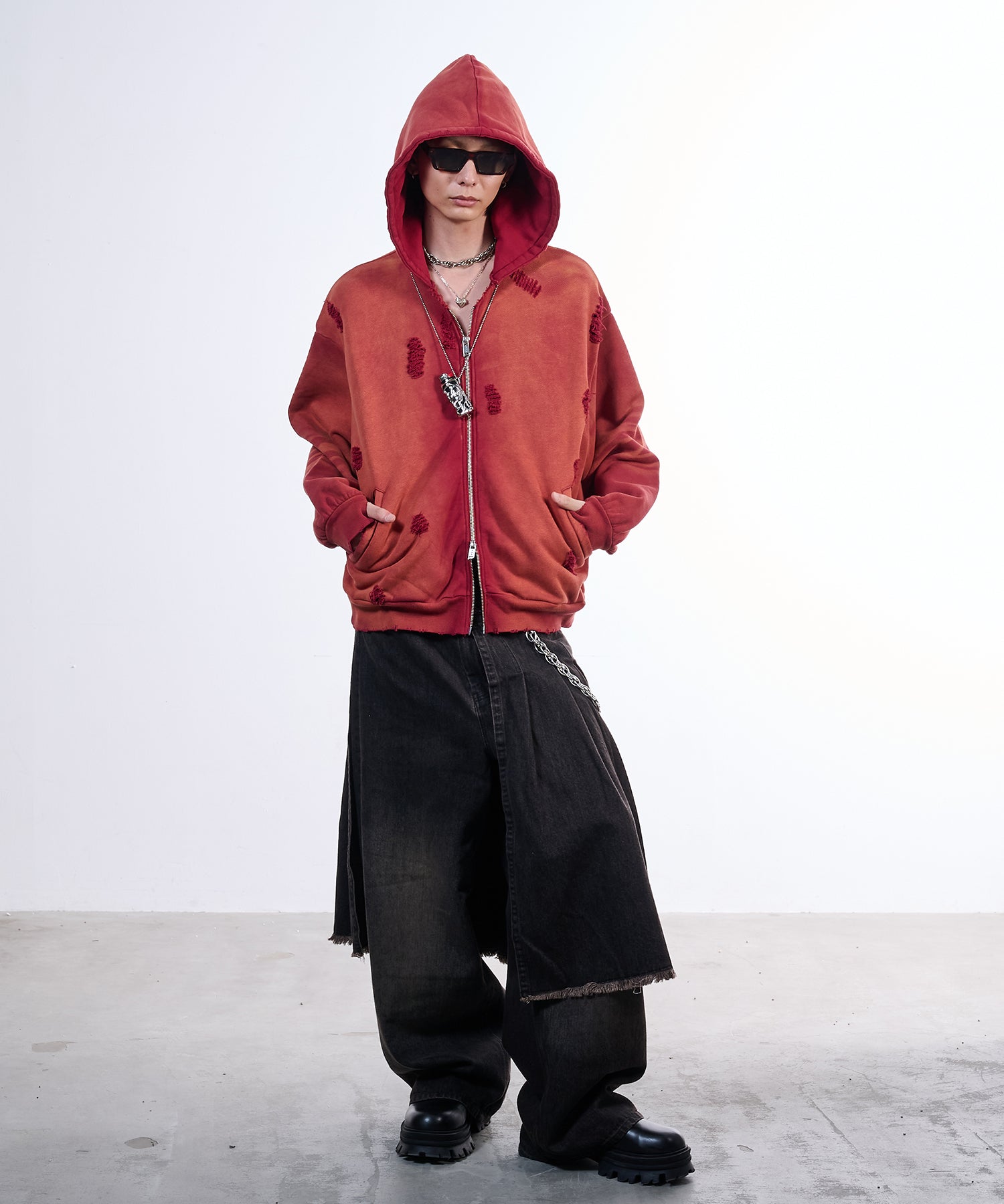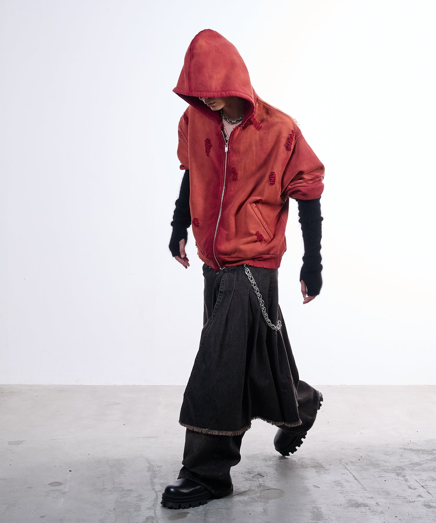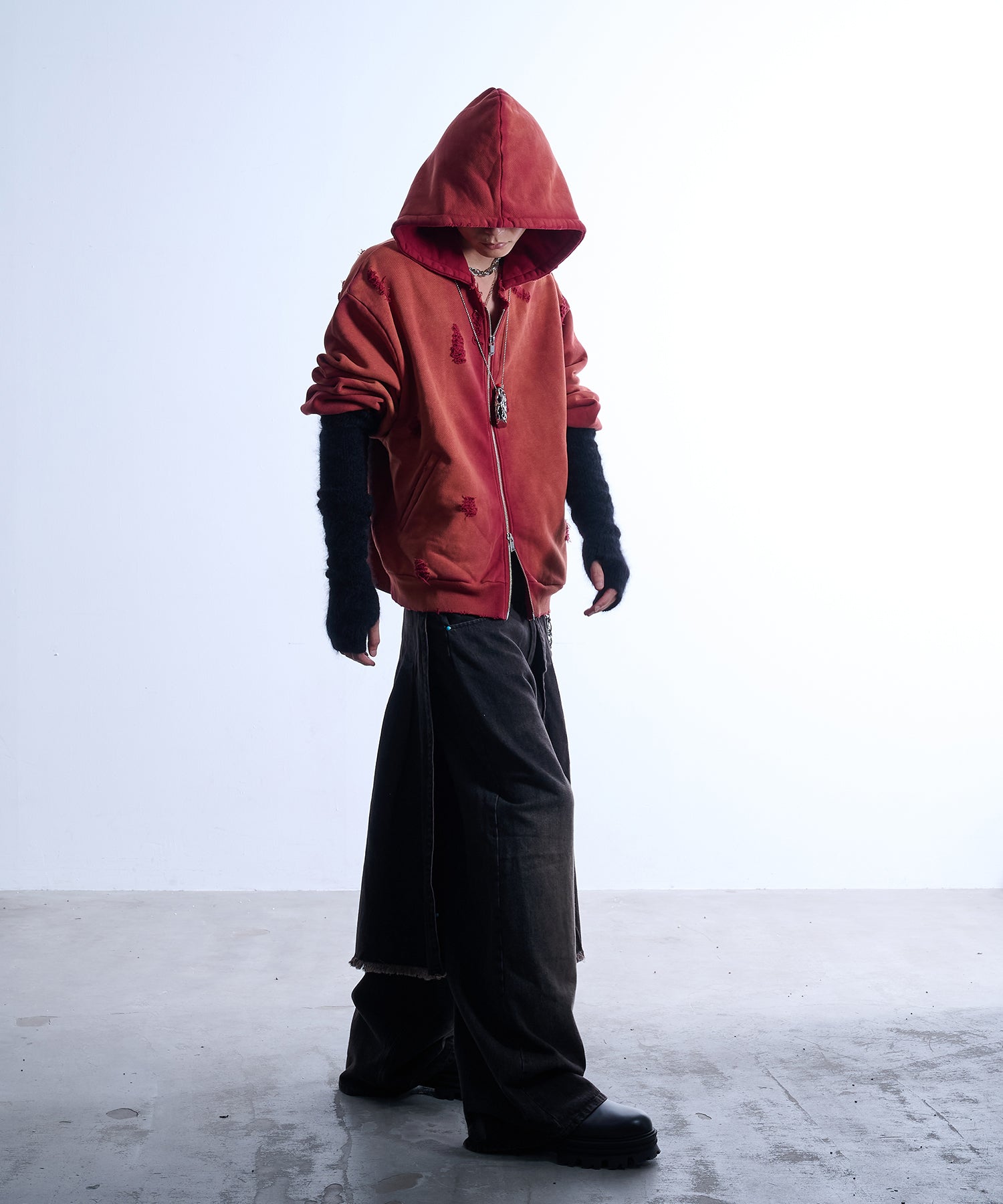オーバーシルエットでありながら着丈はやや短めし退廃的な雰囲気に仕上げています。