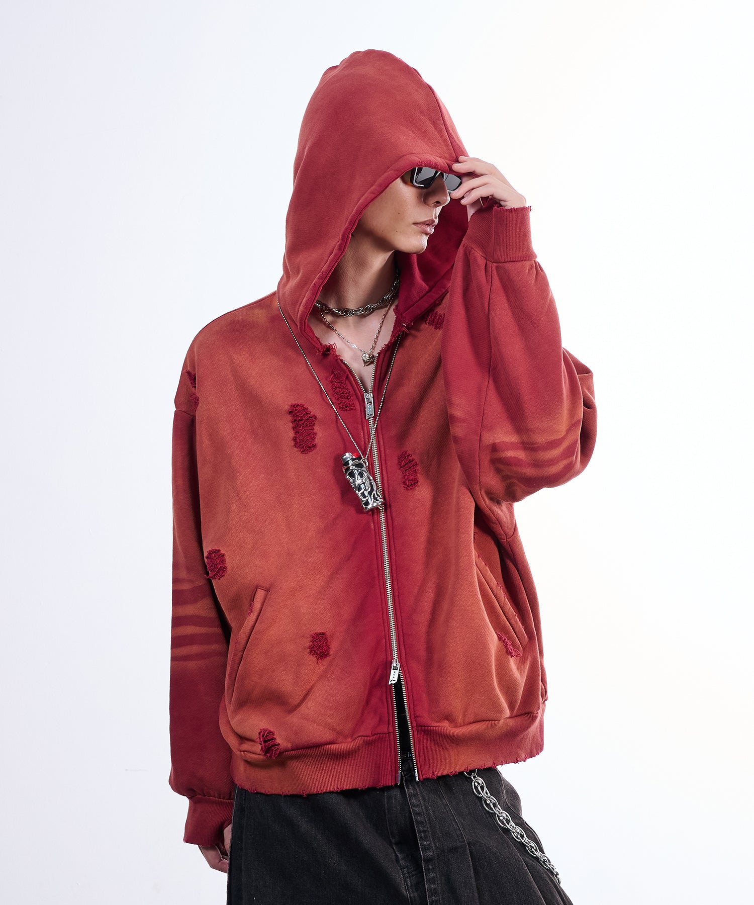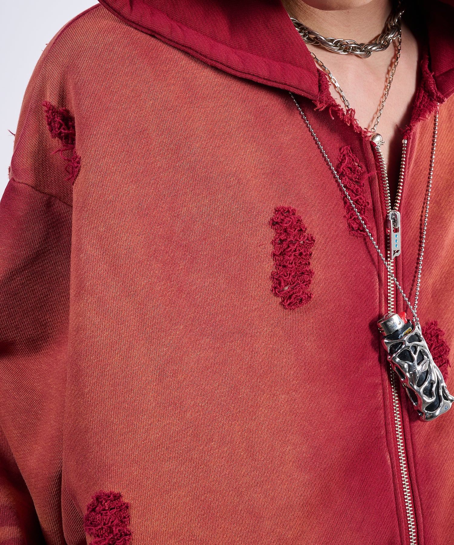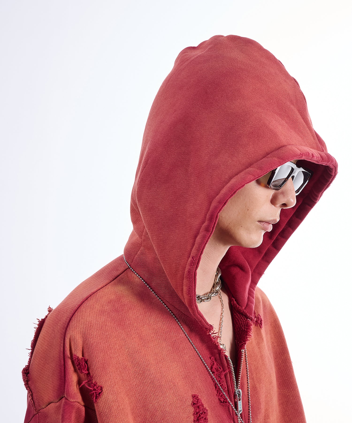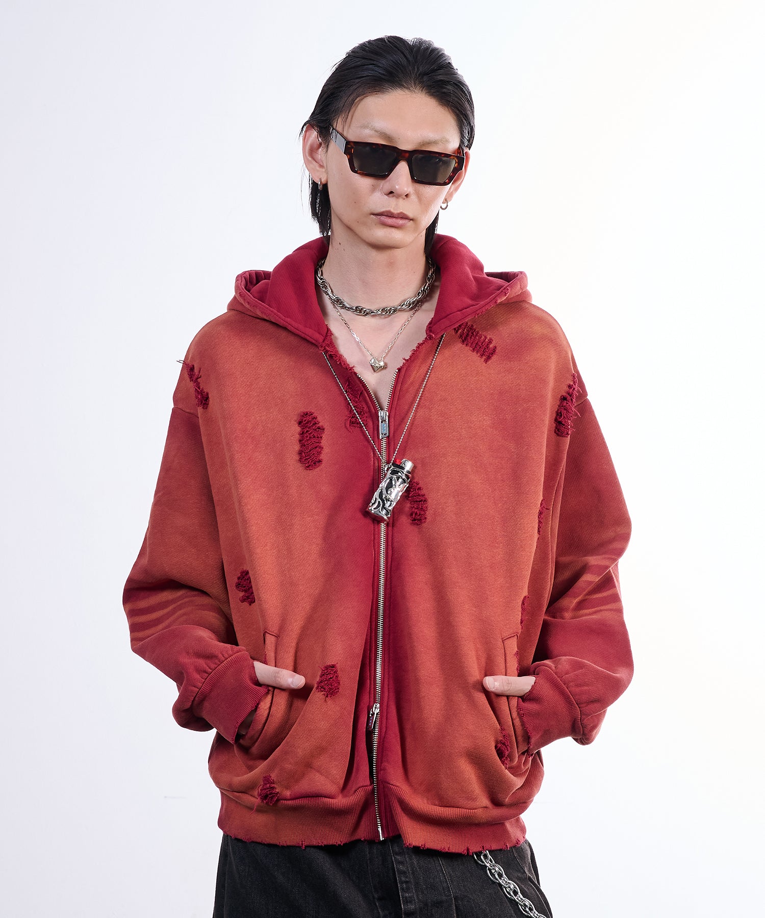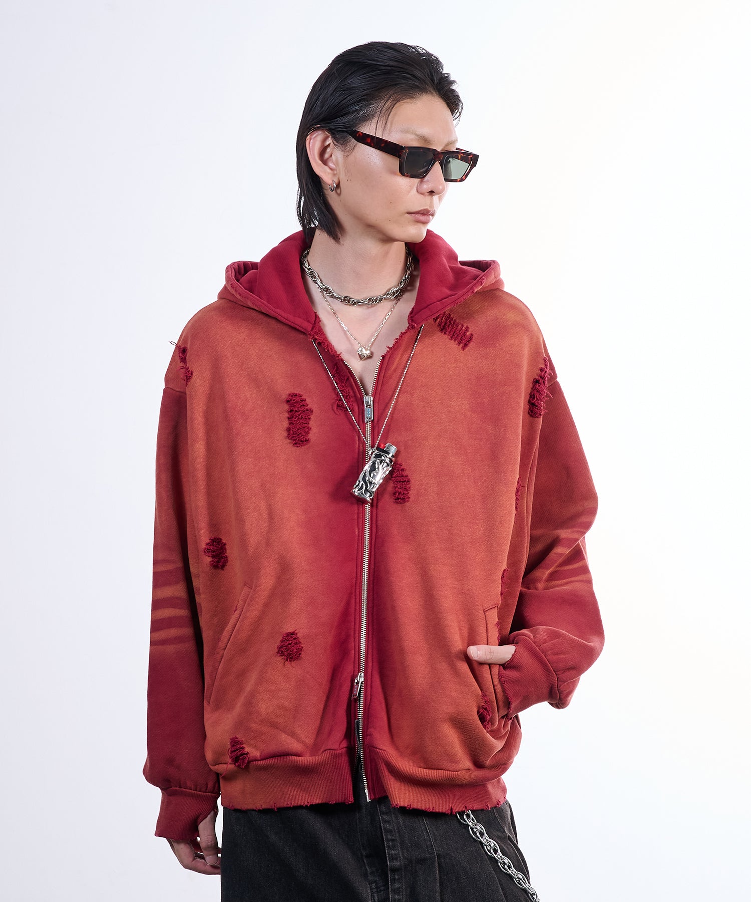 オーバーシルエットでありながら着丈はやや短めし退廃的な雰囲気に仕上げています。