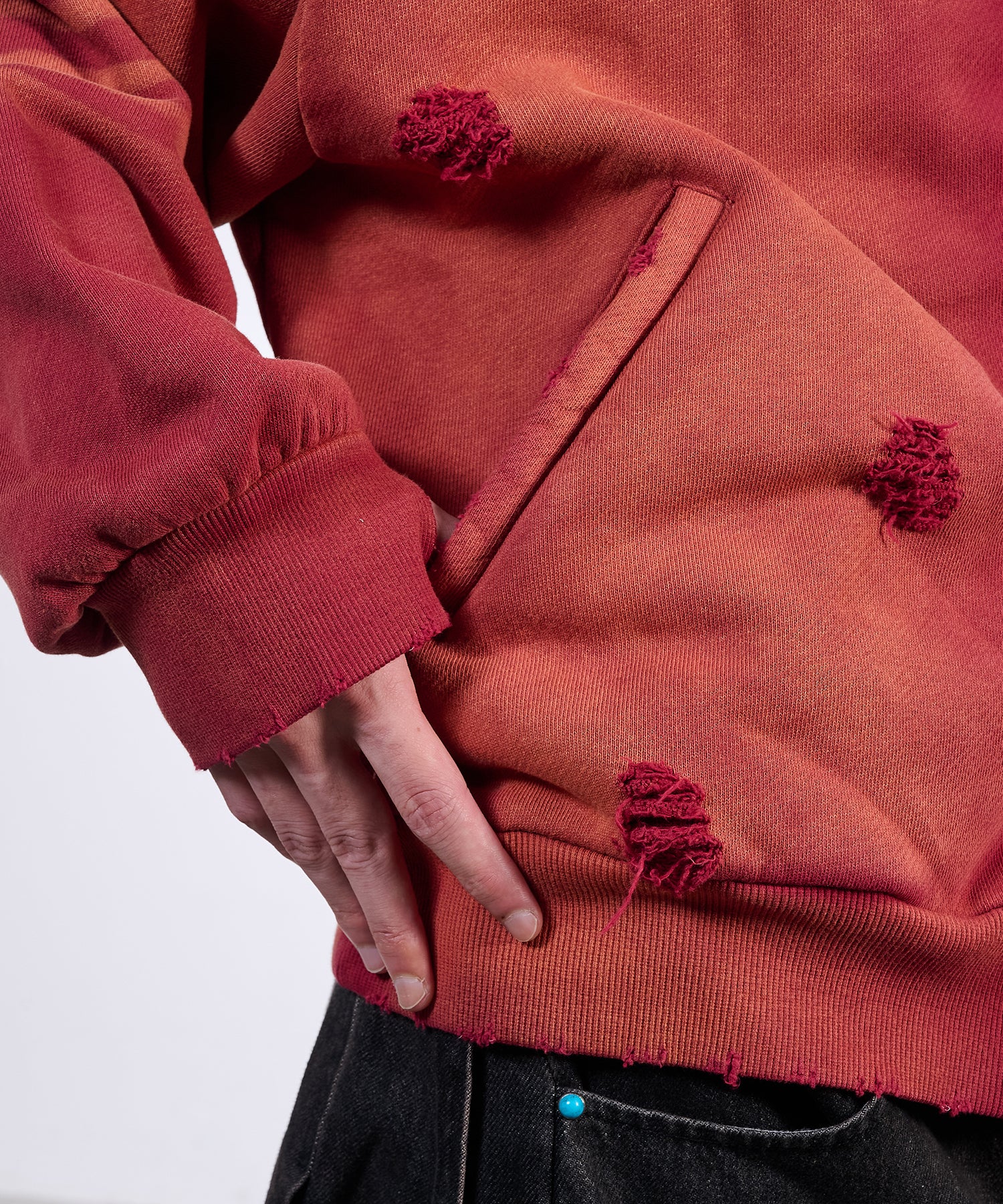 洗いを重ねたフェード感と陽の光を長く当たったような色落ちを再現し加工を施しています。