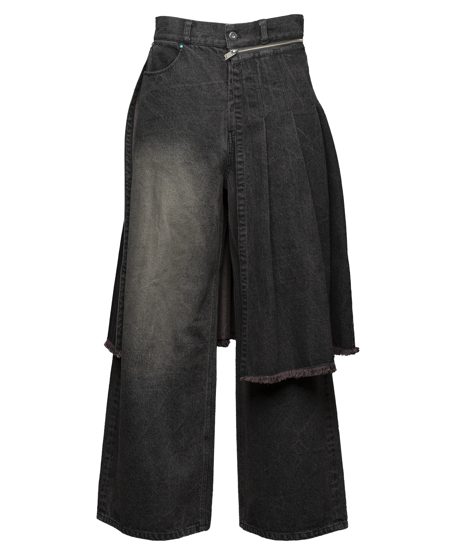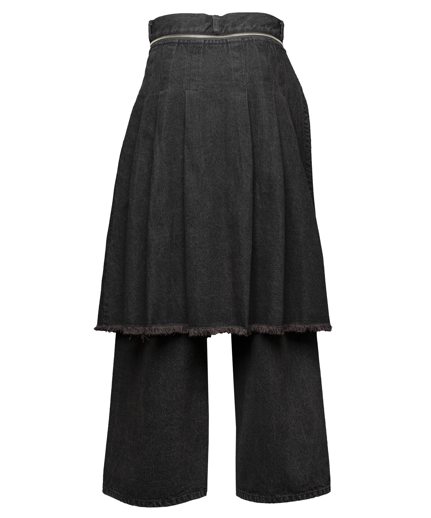 14オンスの厚みあるデニム生地を使用し、スカートの取り外しで2WAYの着こなしが可能。