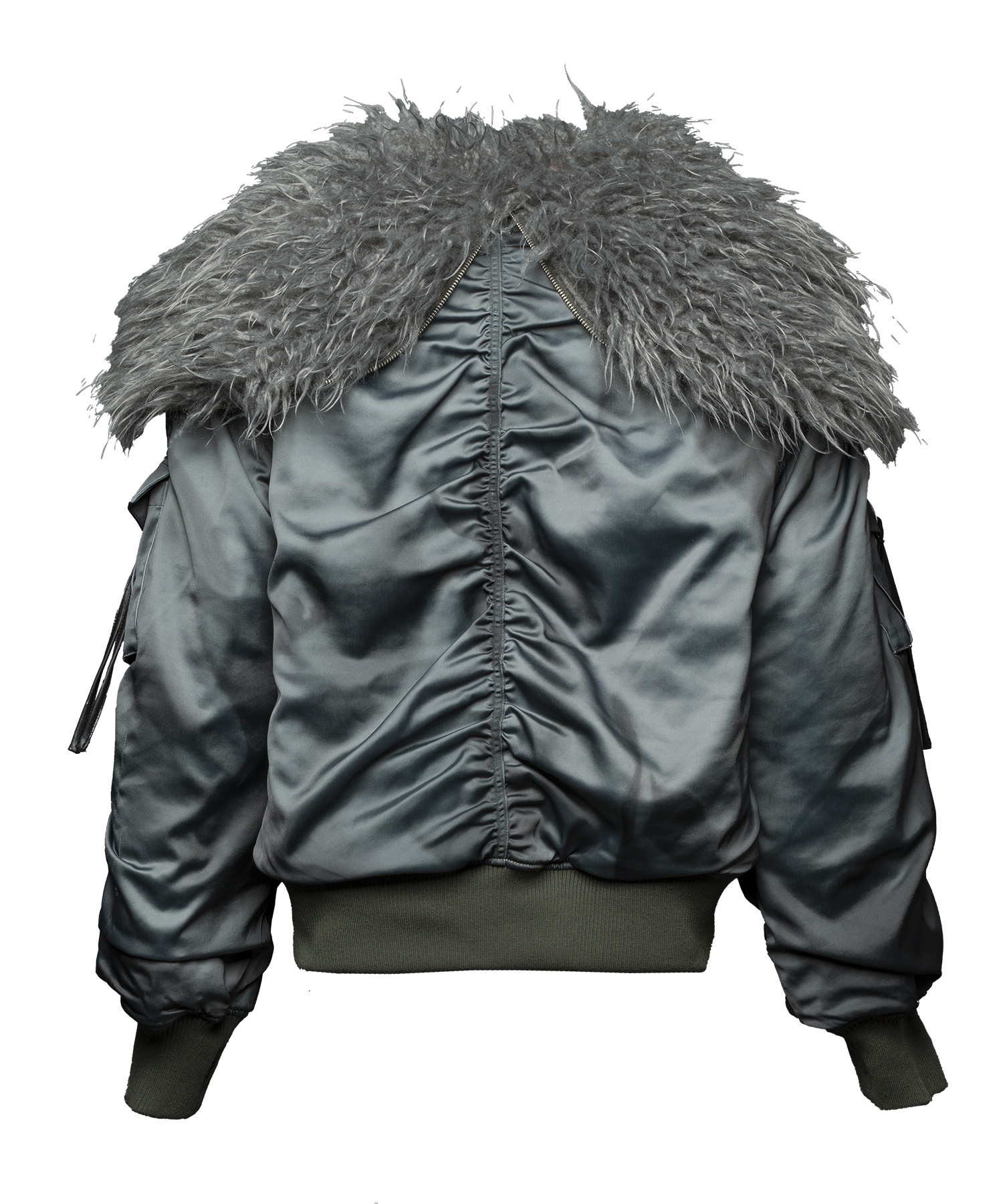 ナイロン風のヴィンテージ加工素材を使用し、控えめな光沢感が大人の雰囲気を演出。ボリュームのあるアームとショート丈のバランスが絶妙。