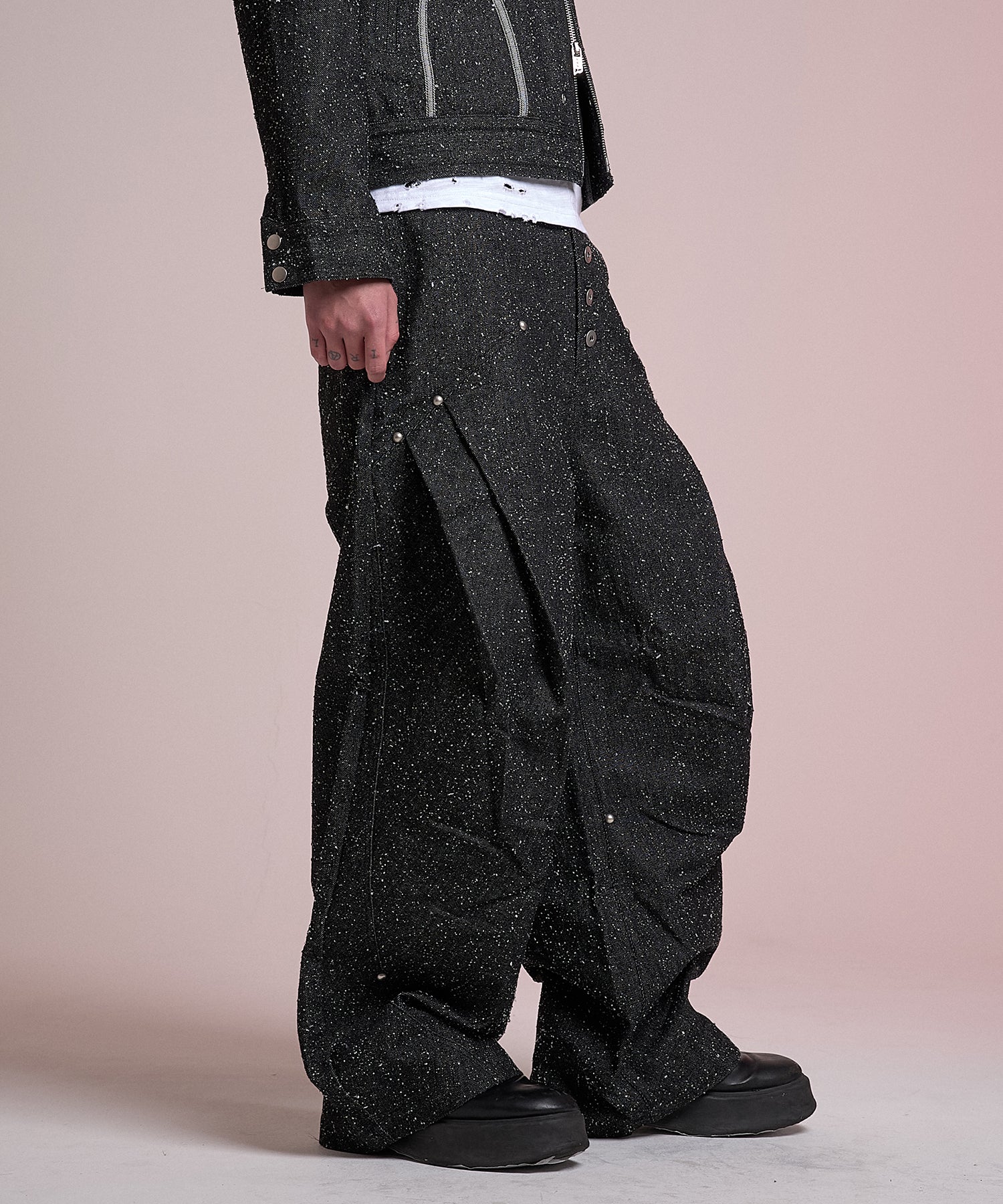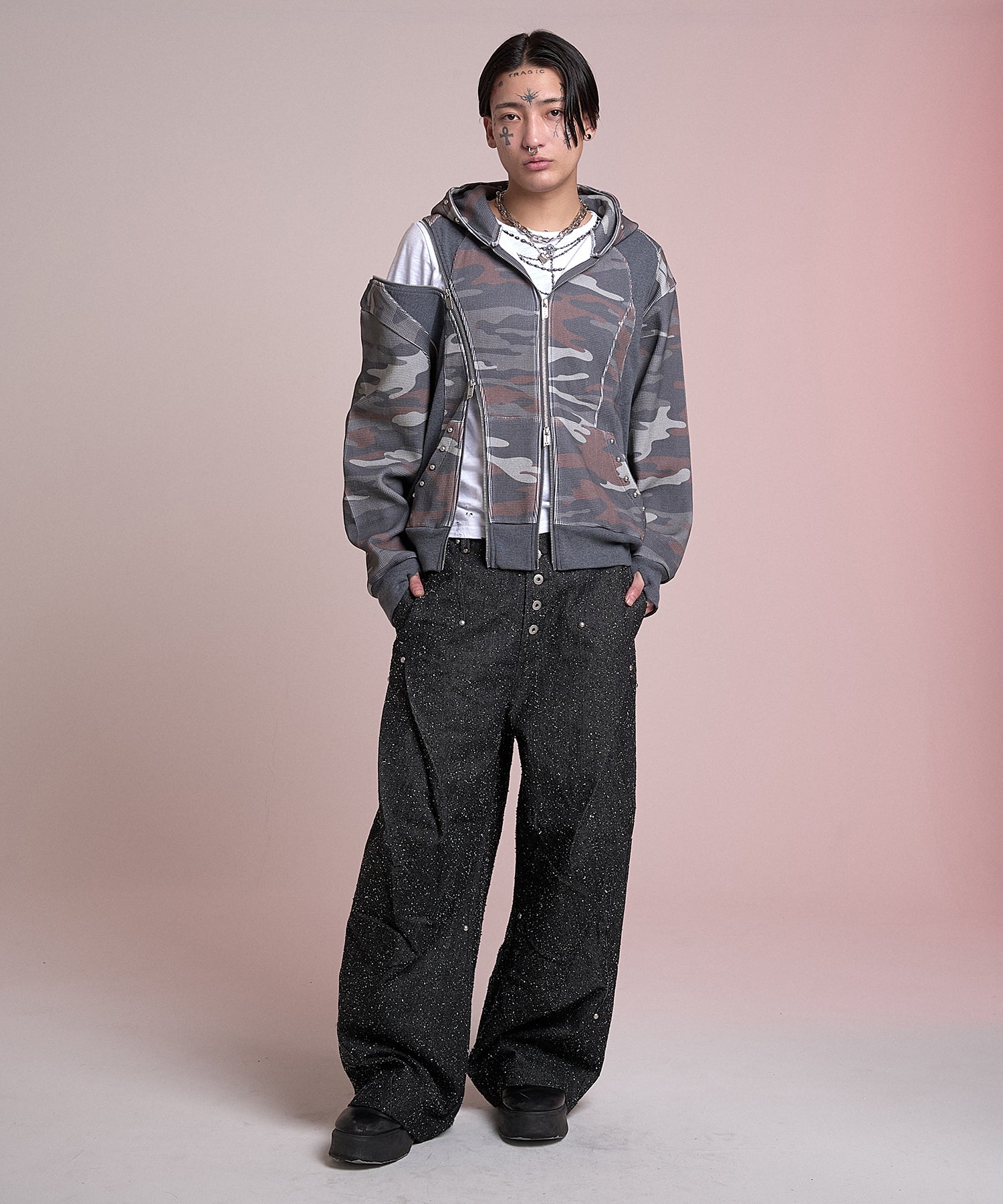 采用了一种称为漂白渐变的复杂工艺,在整个产品中营造出一种垃圾氛围。
