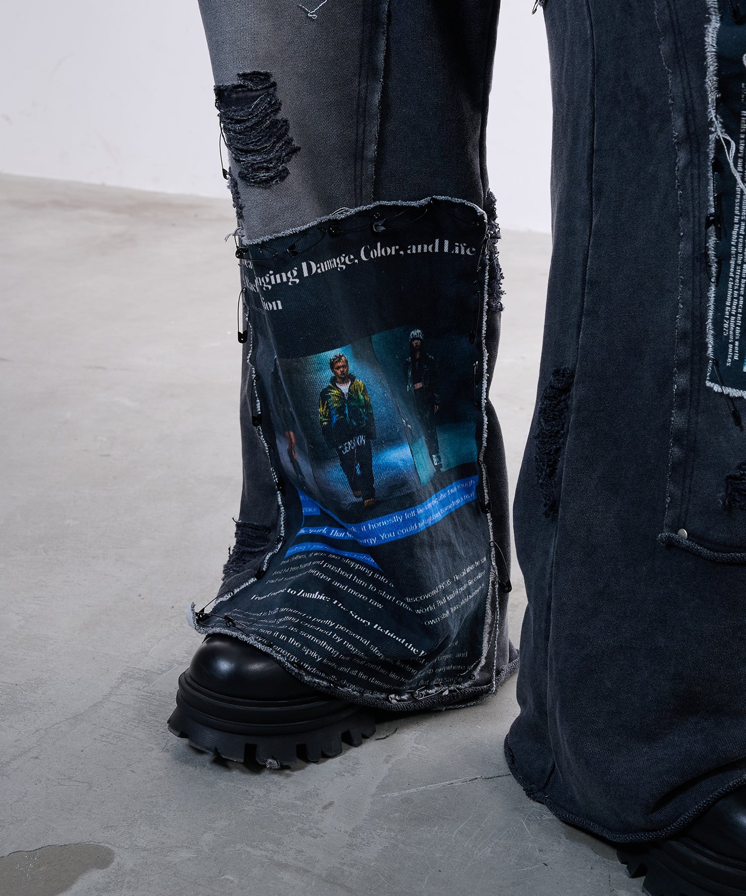 采用了一种称为漂白渐变的复杂工艺,在整个产品中营造出一种垃圾氛围。