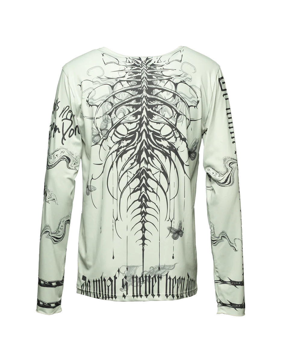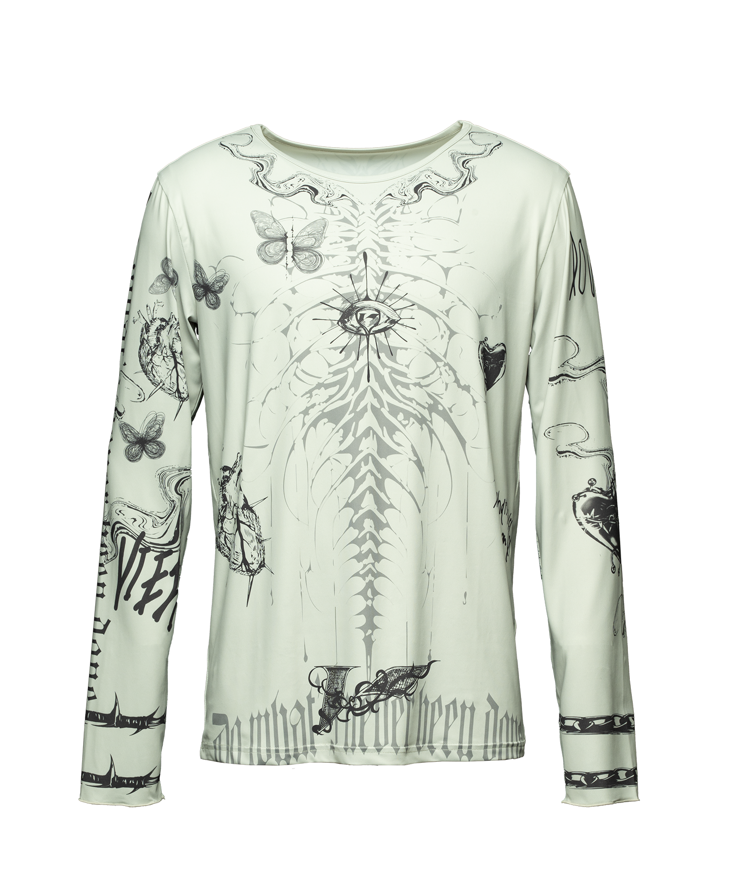 胸口中央的印花采用原创图案,灵感源自本季银河系的无政府状态主题。